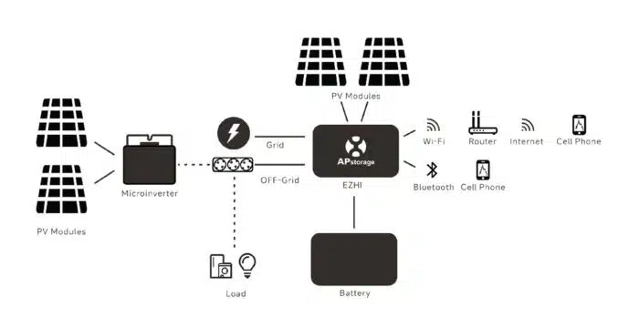 Das EZHI-System kann nahtlos in die bestehende steckerfertige PV-Anlage integriert werden, wodurch das Solarsystem in ein Photovoltaik-Energiespeichersystem aufgewertet wird.