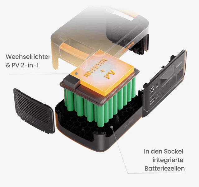 Die fortschrittliche CTB-Technologie (Cell-to-Body)⁸ – auch in Elektrofahrzeugen eingesetzt – sorgt für ein robusteres und kompakteres Design. Die Kombination aus Wechselrichter und Photovoltaik sowie die im Sockel integrierten Batteriezellen steigern die Raumeffizienz um 14 % (im Vergleich zum Explorer 3000 Pro) und erhöhen die Langlebigkeit für mehr Sicherheit.